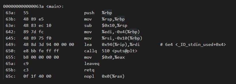回到程序装载,使用objdump -d helloworld执行反汇编操作,得到以下汇编代码
